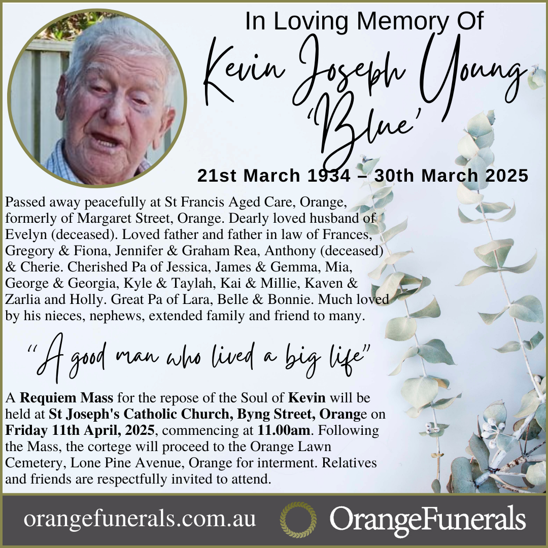 The family and friends of John are warmly invited to attend his funeral service to be held at St Joseph’s Catholic Church, Byng Street, Orange on Friday October 25, 2019 commencing at 11am.